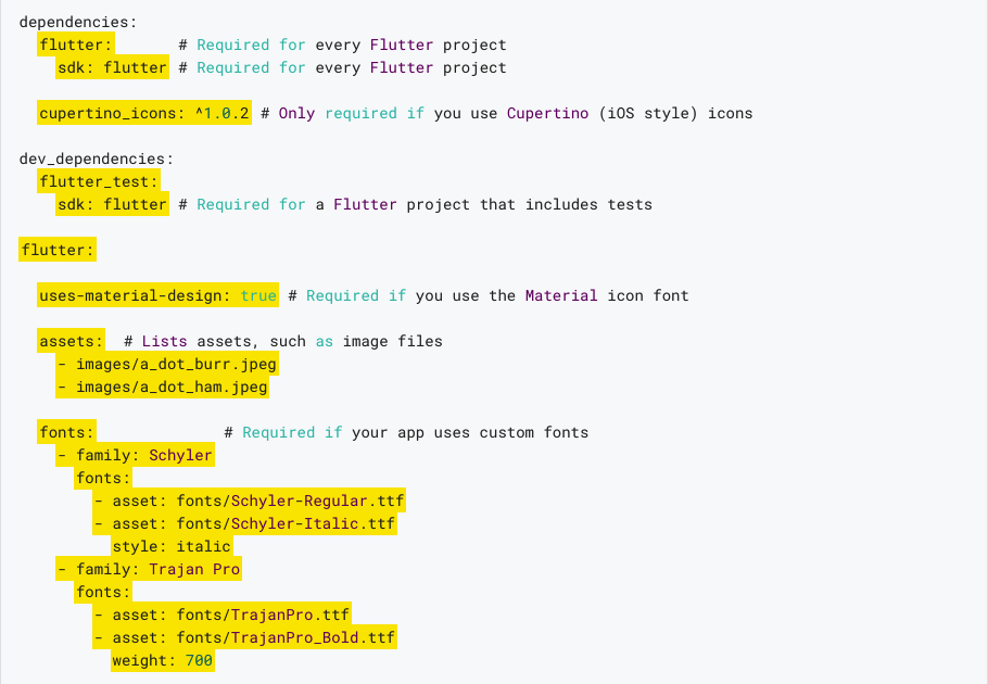 Flutter and the pubspec file