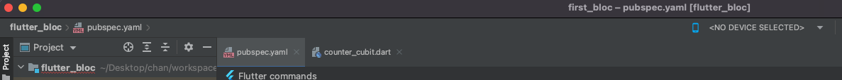 제가 생성한 프로젝트의 이름은 'flutter_bloc' 였고