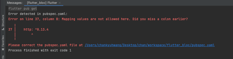 pubspec.yaml 파일에 잘못 추가한건가...