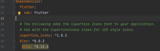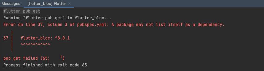 'flutter_bloc' 제가 추가하려는 bloc 라이브러리 이름과 같았습니다.