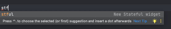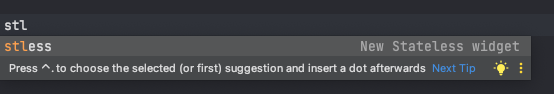 stl stf 를 통하여 자동완성으로 간단하고 빠르게 Widget 생성이 가능합니다.
