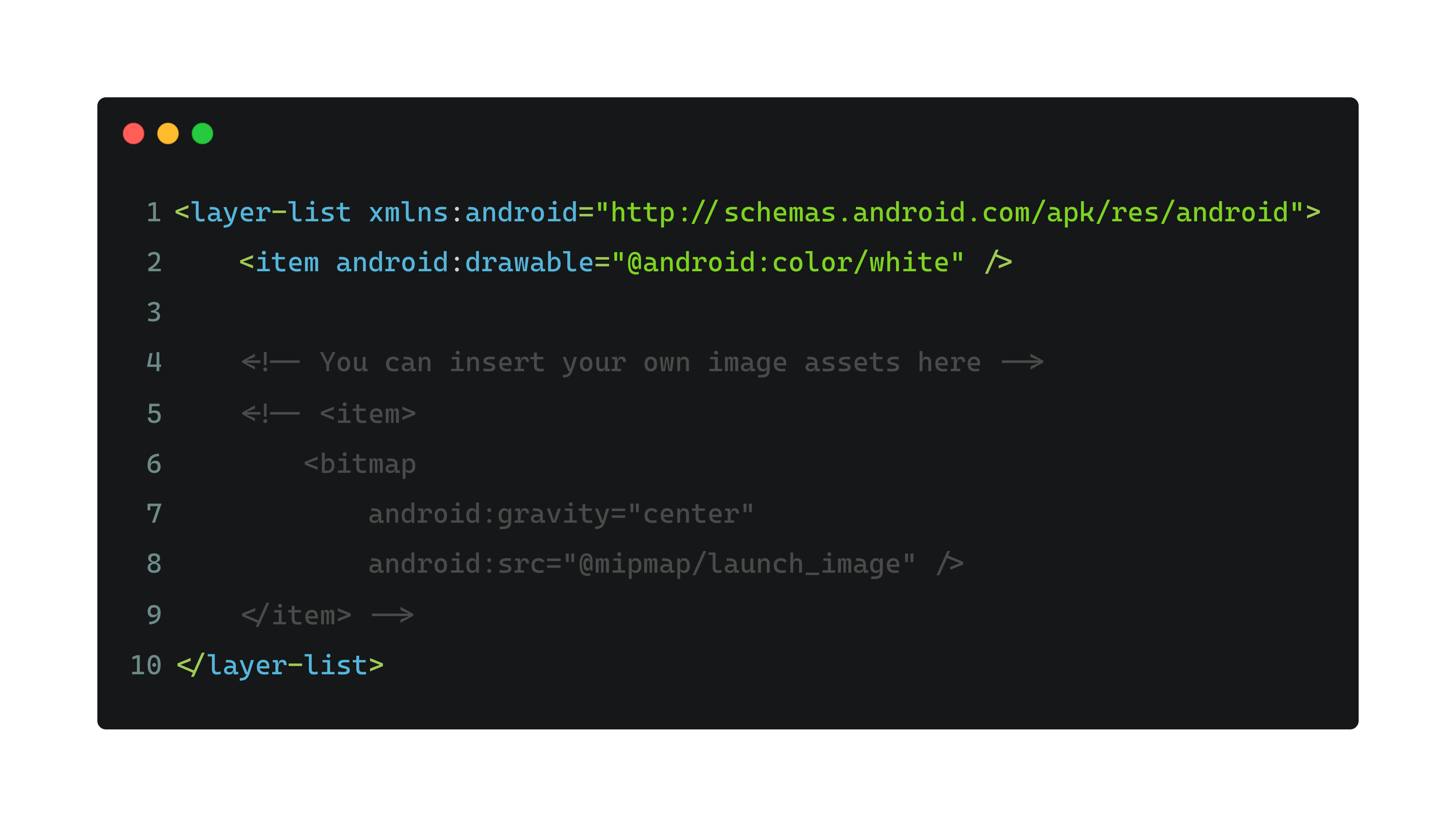위와 같이 'launch_background.xml' 를 작성했습니다.
