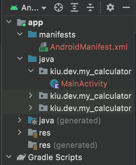 package="kiu.dev.my_calculator"> // package=프로젝트 패키지 네임 정의