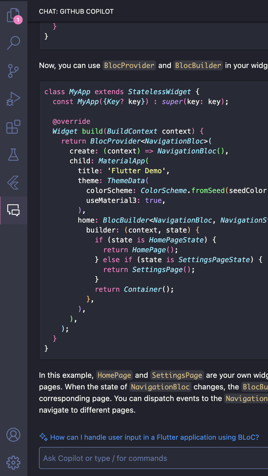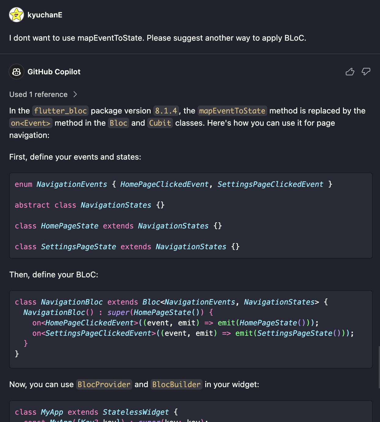 이번에는 Copilot을 통하여 BLoC Class를 생성해보려고 합니다.
