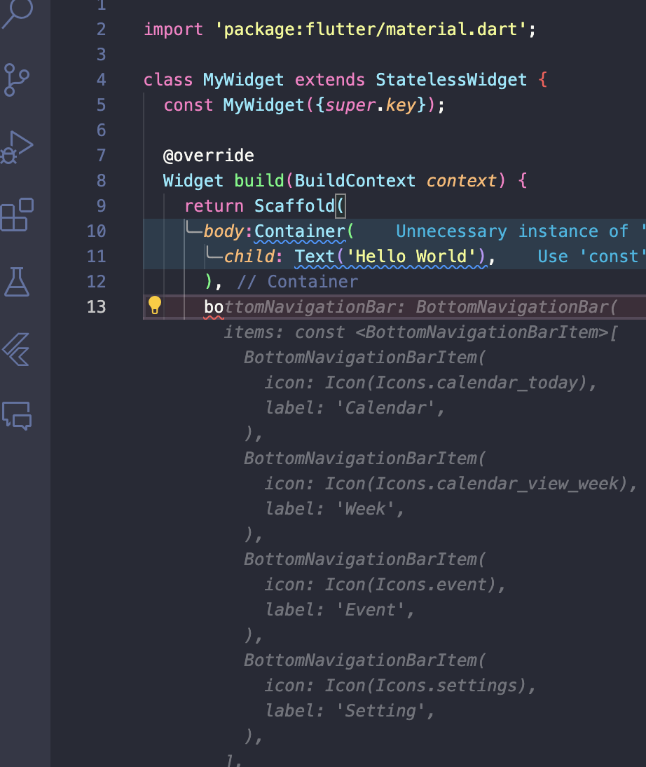 저는 그저 Scaffold 위젯 안에 'bo' 까지만 작성하니
