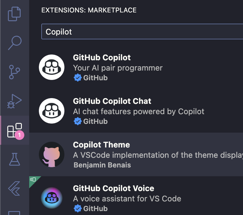 VSCode의 Extension에 진입하여 Copilot을 검색하여
