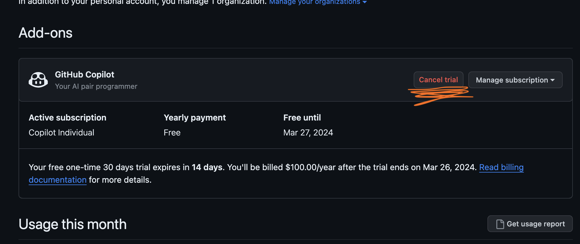 'cancel trial'을 클릭하여 진행하시면 됩니다!