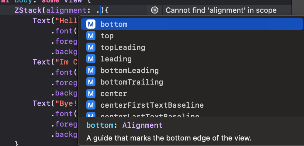 ZStack 또한 다른 alignment 정렬값을 가지고 있습니다.