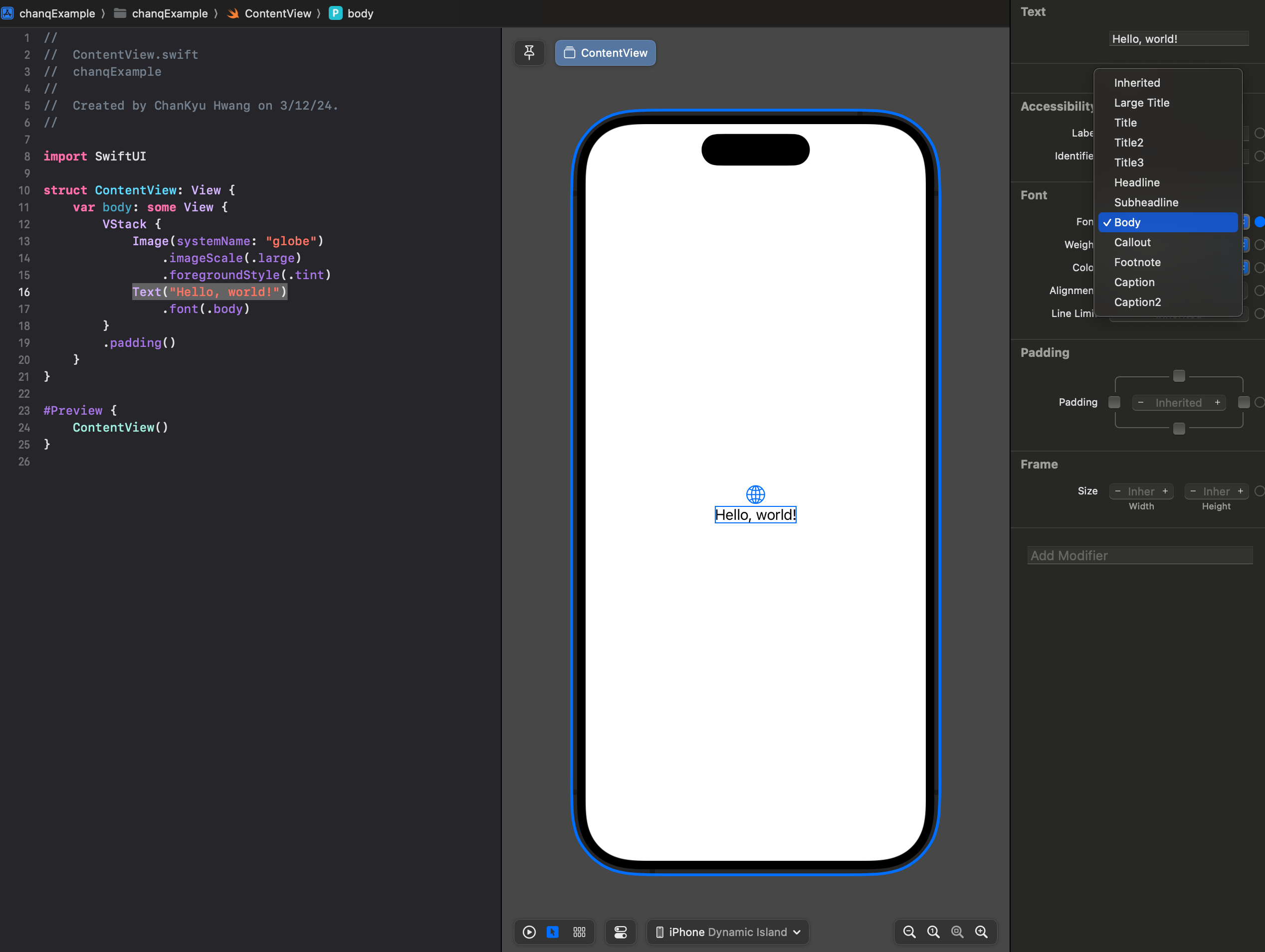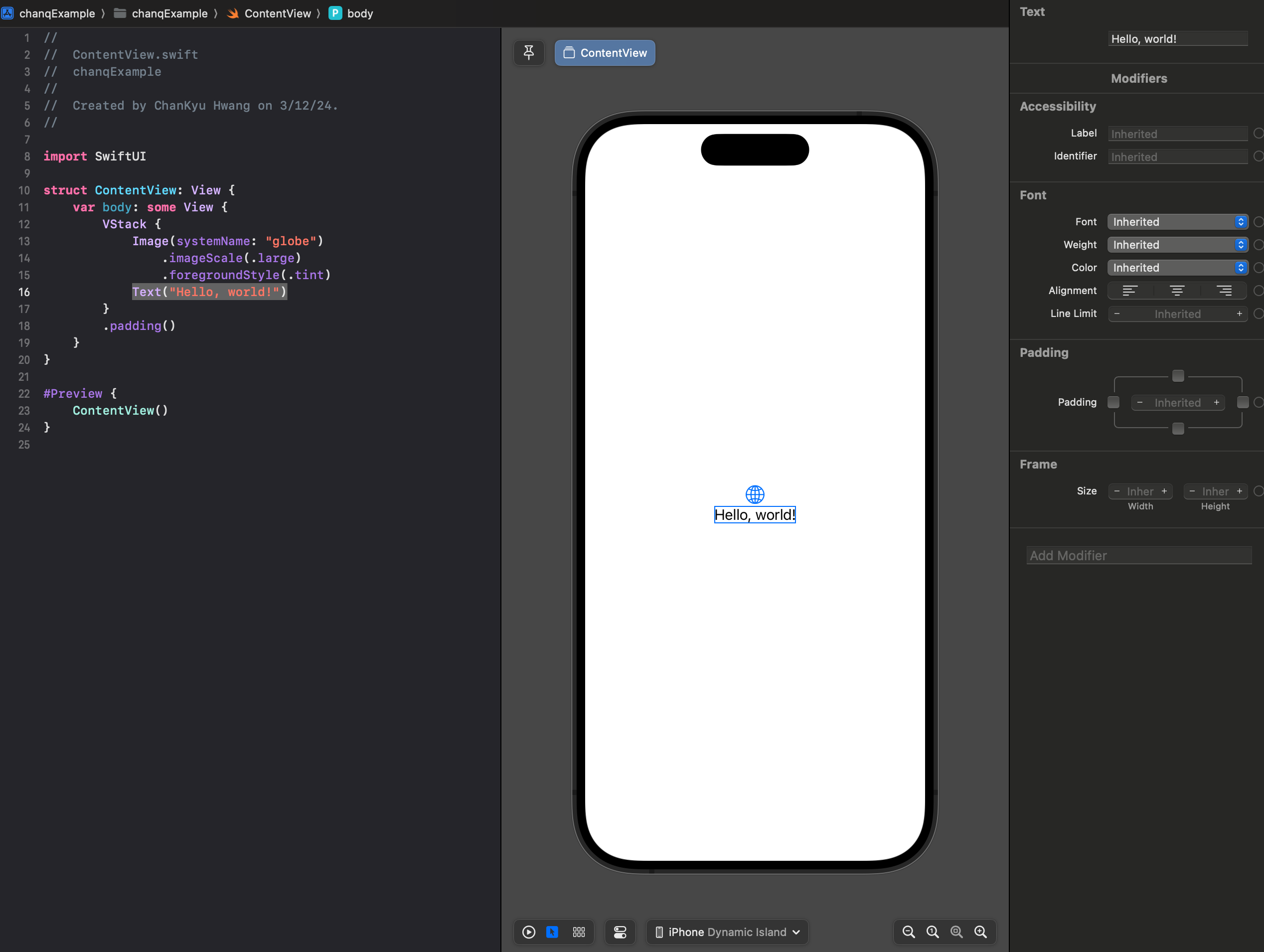 우선 프로젝트를 생성하면 VStack이 세팅되어 있으니