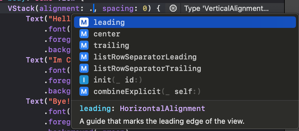 VStack(alignment: ) 속성을 활용하여 변경이 가능했습니다.